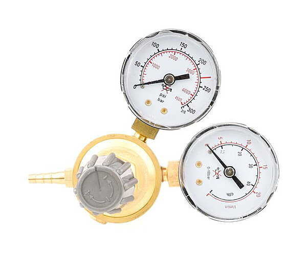 It features two pressure gauges that allow for continuous monitoring of operating parameters, as well as an adjustment screw, allowing for adjustment of parameters to the selected welding method.