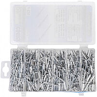 Set of 450 pieces of aluminum blind rivets in various sizes.