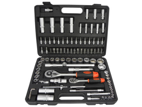 Socket Set with Ratchets, Adapters and Extensions 1/2 and 1/4 in. Drive 94 pcs G10150 HEIDMANN