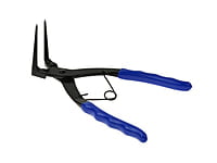 90° long reach internal circlip pliers. Suitable for removing and replacing small to medium internal snap rings up to 50 mm deep. Commonly used on master cylinder, transmission gear locating, bearing retention and oil seal snap rings.