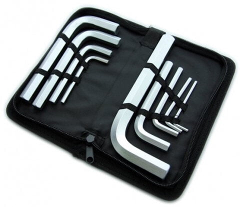 The set is placed in a practical pencil case closed with a lock, facilitating storage and transport due to the dedicated space for each key and rubber bands that prevent the keys from moving.