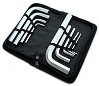 Set of 9 hexagon hexagon socket wrenches in sizes from 3 to 17 mm.