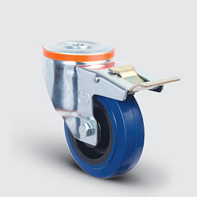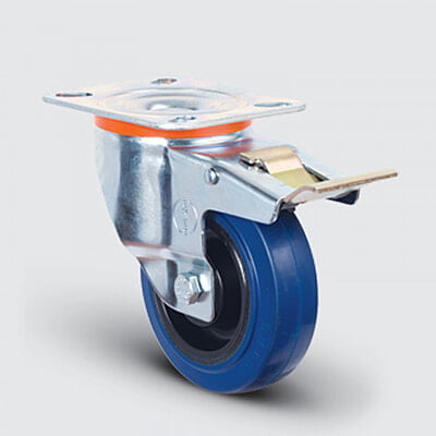 Castor Wheel Heavy Duty Elastic Rubber 125mm 140kg With Brake EMES EM04 ZMRM 125F