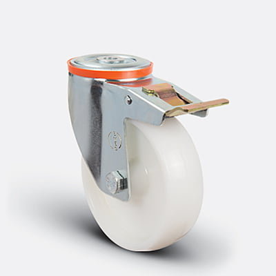 Caster wheel white nylon swivel plate with brake 125mm PP G71523