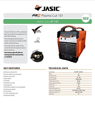 Plasma Cut 101 Inverter Clean cut 30mm Severance 35mm JASIC 5 YEARS GUARANTEE ZXJP-101