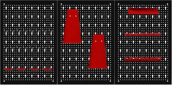 The durable steel construction ensures resistance to damage and long life, even with heavy use. Thanks to the perforated surface and a set of hooks and brackets, you can freely configure the tool arrangement. The boards can be expanded with additional modules, creating a custom storage system tailored to the user's needs.