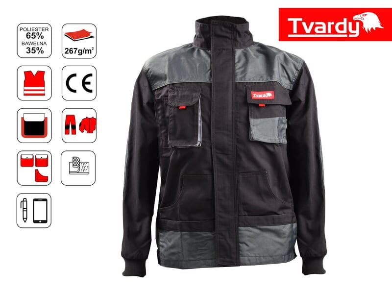 Work Jacket made of Cotton (35%) and Polyester (65%) Material weight: 267 g/m2 7 pockets, including 4 with Velcro fastening Mobile phone pocket Pen/pencil pocket Zip fastener Width adjustment at the jacket bottom with buttons Reflective components on chest and back Strengthened pockets and elbows area with Polyester fabric Additional stitching ID insert CE Certificate Technical Data Material Composition: 35% Cotton, 65% Polyester Material Weight: 267 g/m2 Size: S