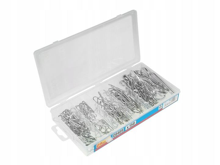 The set includes the following pins: 42 pcs of pins 2 x 30 mm; 30 pcs of pins 1.6 x 35 mm; 15 pcs of pins 1.6 x 40 mm; 25 pcs of split pins 2.2 x 42 mm; 20 pcs of split pins 3.2 x 48 mm; 8 pcs of pins 3.8 x 72 mm