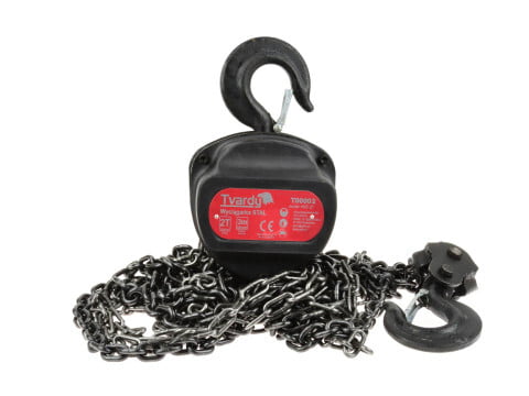 Powerful and durable Professional Steel Chain Hoist 2000kg 3m TVARDY. Chain Hoist is used to manually lift very heavy objects like car engines. Variable mounting thanks to two steel hooks.