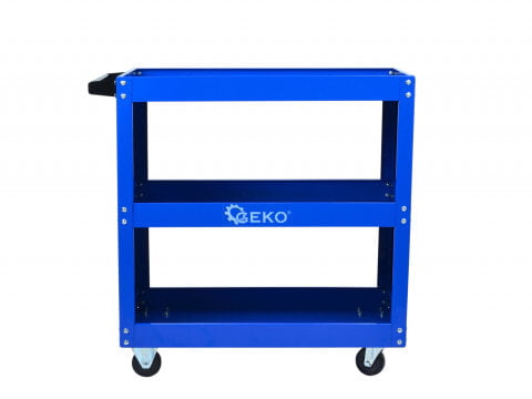 A professional, solidly constructed workshop cart that helps keep your workstation organized. The cart features an ergonomic, screw-on handle for easy transport. It is equipped with three spacious shelves. It also has four casters, including two swivel casters with brakes.