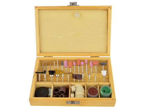 100 pcs Mini Drill Bit Tool set fits 1/8" (3,2 mm) shank. Suitable for driling, sawing, sanding, grinding, shaping, polishing, honing.