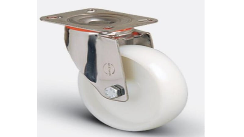 Heavy Duty Polyamide wheel [natural white],- Polyamide wheel.- Hub with roller bearing.Maximum Load Capacity 120kg Wheel Diameter 65mm Dimension from mounting top to floor 106 mm