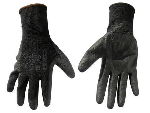 Product DescriptionProtective gloves made of cotton fabric. Polyurethane (PU) coating for minimal cut protection. Elasticized knit wrist cuff helps hold glove in place on hand.Product Featuressize: 9color: blackabrasion resistantbreathable linerdurable PU coatingmaterial: cotton fabric, polyurethane
