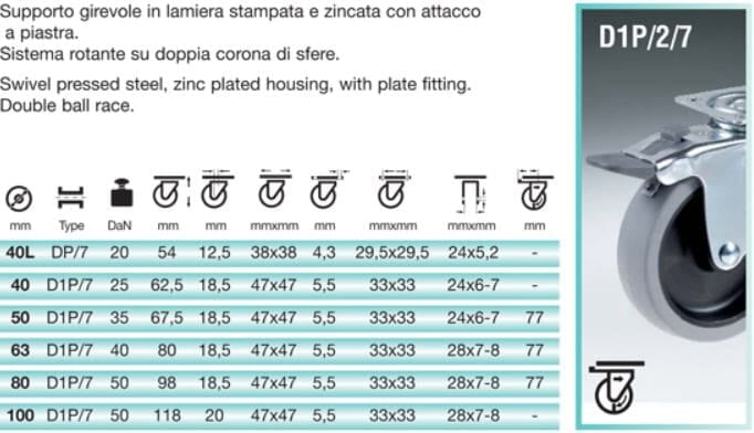 CASTOR RUBBER WITH BRAKE 63MM, 40KG ,CEBORA D1P/2/7 63