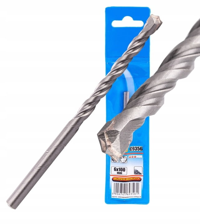 Cylindrical drill bit for drilling holes in concrete and brick.