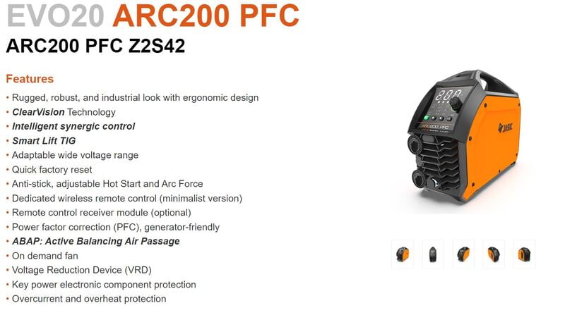 Jasic EVO Arc 200 PFC Inverter c/w Case & Leads