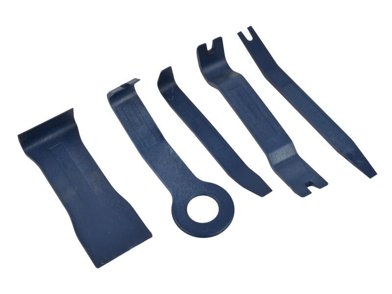 Five piece set of angled lever tools designed for removing car trims, door panels, upholstery and fascias from the dashboard. The tools are manufactured from nylon to avoid marking and scratching metal, wood or upholstery material.