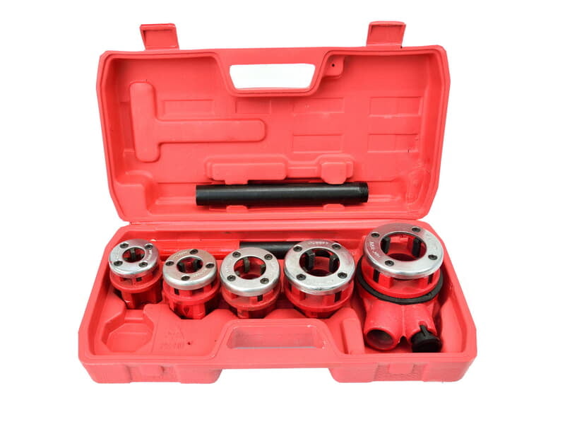 Ratchet Pipe Threading Set is suitable for threading black gas or galvanized iron pipes.