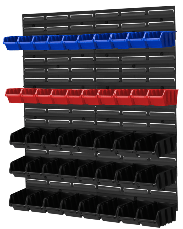 The KRAFT&DELE KD11864 Workshop Bin Board is a practical set that allows for convenient storage, sorting, and organization of various small items. Thanks to the numerous bins of various sizes, each item has its own space, making it easy to maintain order in the workshop, garage, or warehouse.